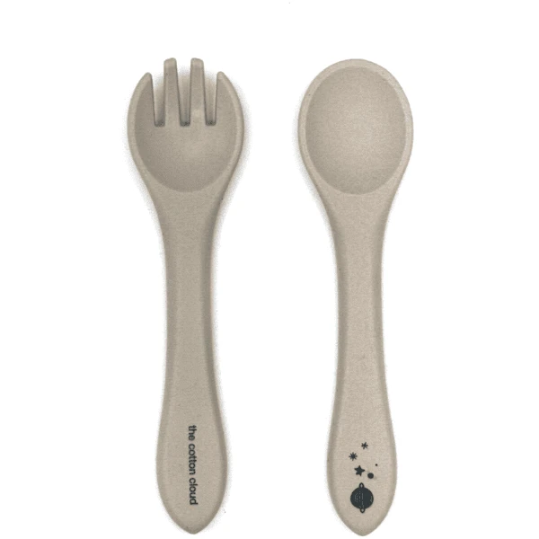 Das Set besteht aus einer Gabel mit weichen, abgerundeten Zacken und einem